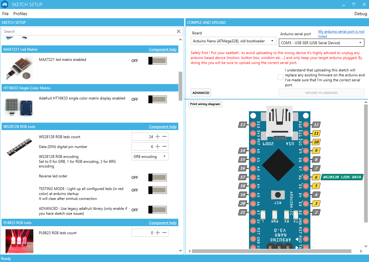 5. To set up the LED's open up SimHub and click on "Arduino" on the left panel and under "My Hardware" select "Single Arduino" and press "Open Arduino Setup Tool". Click "Start From Scratch" once prompted.