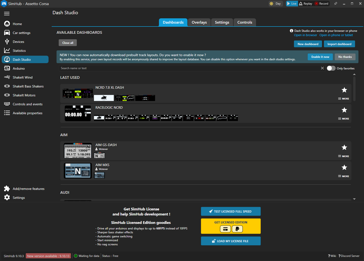 ***Note 2: SimHub require a license (which is a one time donation of any amount) in order to run in the full 60fps. It will only run in 30fps otherwise, which is useable but will cause the dashes to be choppy